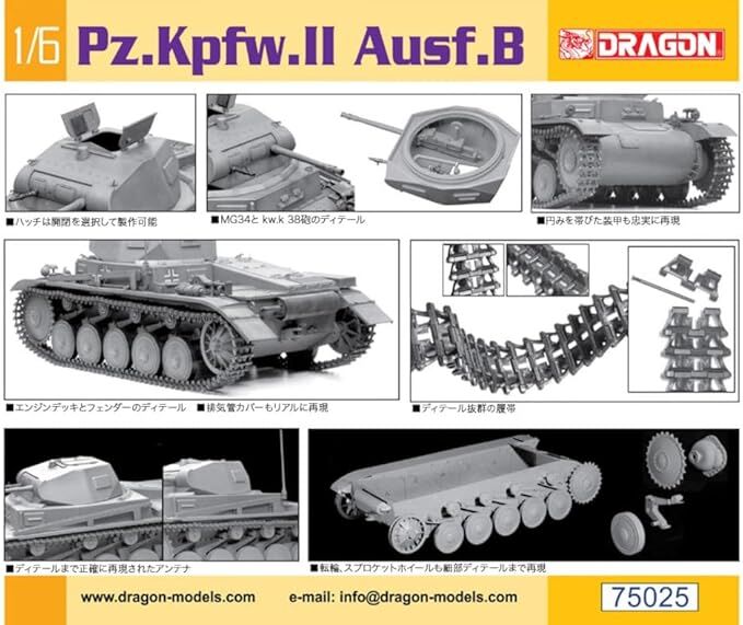 PLATZ DR75025 Dragon 1/6 WW2 German Light Tank II Tank B Type Plastic Model