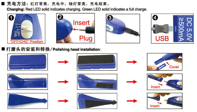 4 different function polishing heads are exchangeable.