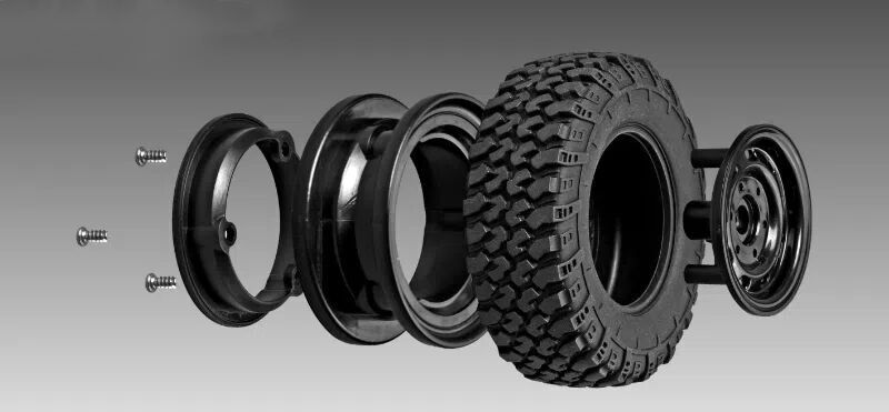 The car is equipped with controllable headlights, taillights, front and rear turn signals, front and rear dual flashing lights, brake lights, reverse lights. This wheels adopts a locking structure, which can prevent dust, water, avoid spinning and idling. The wheel has a diameter of 73mm, a width of 28mm, a hub diameter of 43mm and a adapter of 5mm.