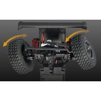 The car features a four-wheel independent suspension system,  allowing it to adapt to various terrains such as deserts, mountain roads, rocky terrain, and more. Additionally,  the vehicle is equipped with soft vacuum tires that offer strong grip and facilitate easy uphill climbs,  with a maximum climbing angle of up to 45°. It incorporates a 260-wave box with the MINI series classic motor for enhanced speed and efficiency while providing  powerful propulsion for the vehicle.