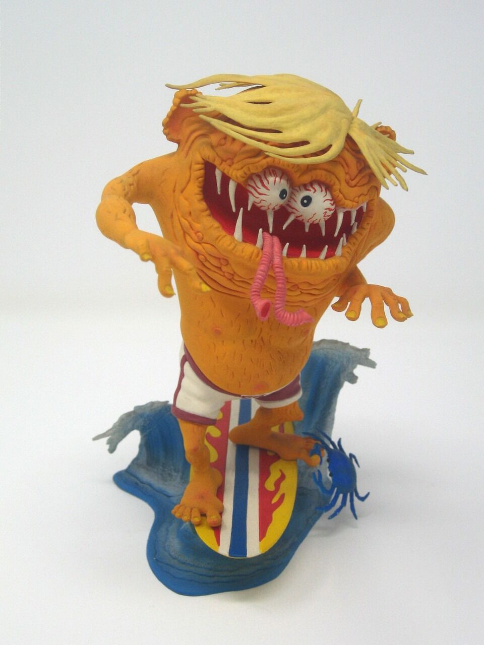 Built-up painted by Andrew P. Yanchus.Ed "Big Daddy" Roth's Gallery of Gassers takes to the waves, as Atlantis re-introduces the Surfink!...the newest model in a high-powered line of successful sellers! Arm and wrists move. Surfink stands alone, on or off board, or holding the board. Kit also includes alternative eye decals, plus a highly detailed Atlantis extra that no surfer should be without...a 1/1,000,000 scale Tidal Wave!, and don't forget "Sam Crab" the Contemptible Crustacean. Originally released in 1964.